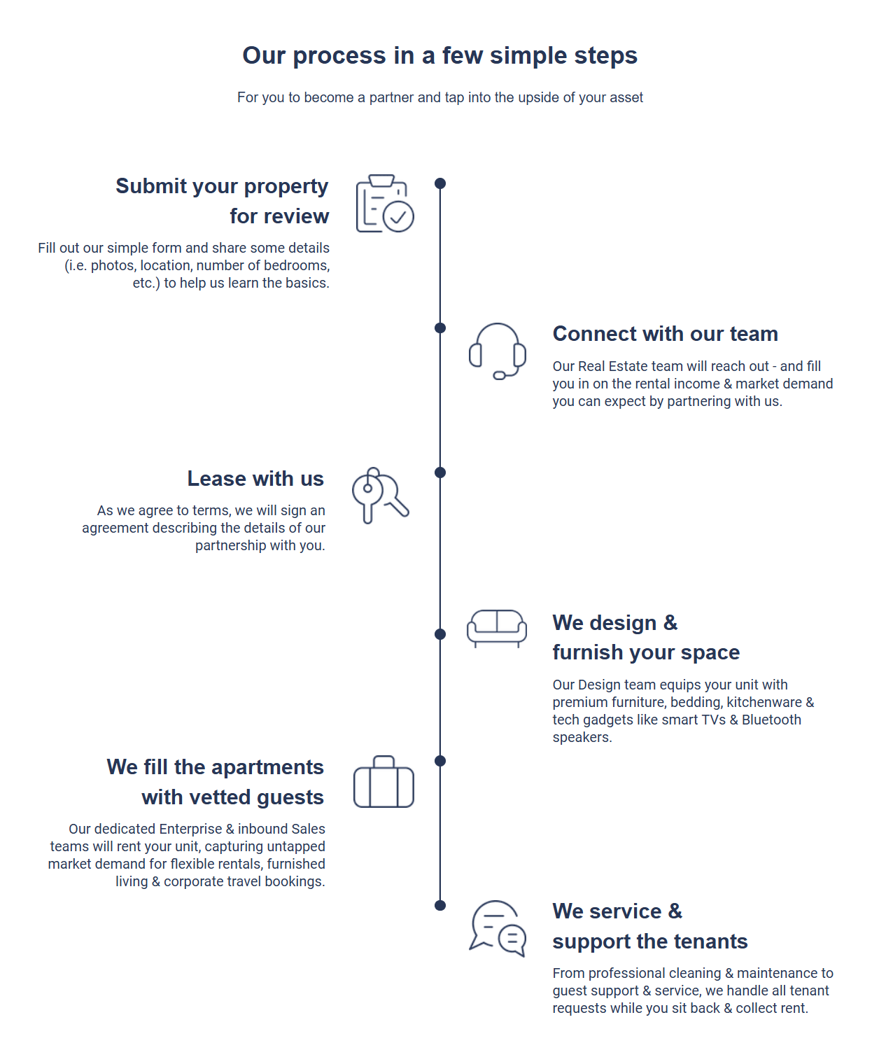 We enhance and fully furnish your property, leasing it to senior business executives for medium- to long-term stays—allowing you to relax and enjoy a steady rental income.